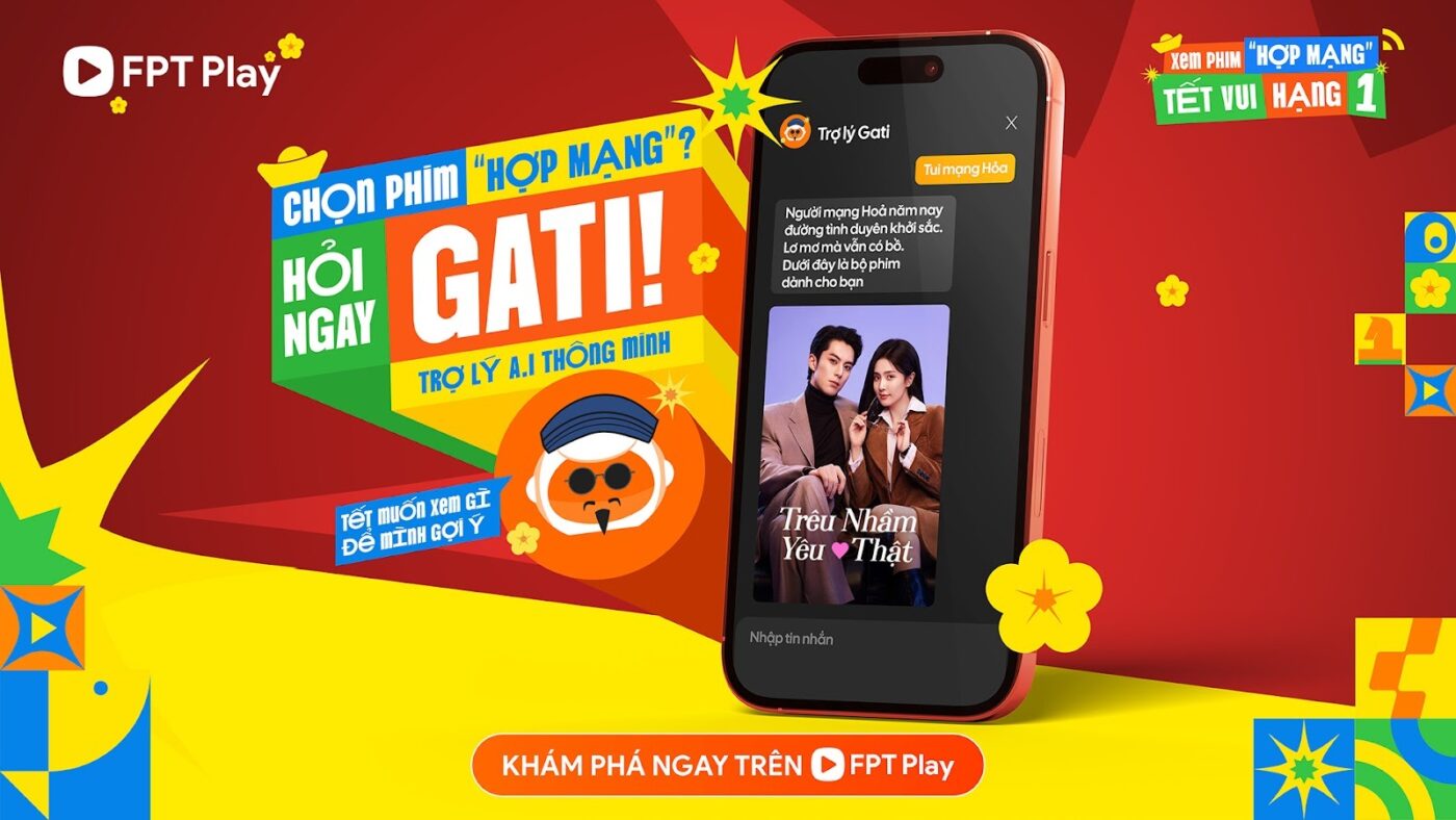 Trong dịp Tết Nguyên Đán 2026, FPT Play cũng triển khai thêm tính năng đặc biệt “Xem phim hợp mạng – Hỏi ngay Gati”. Người dùng chỉ cần nhập năm sinh âm lịch hoặc mạng ngũ hành (Kim, Mộc, Thủy, Hỏa, Thổ) trong khung chat, Trợ lý Gati sẽ gợi ý những nội dung “hợp mạng”, bao gồm phim bộ, phim điện ảnh, anime, show giải trí… Không chỉ là câu chuyện mang tính biểu trưng của ngày Tết, tính năng này mà còn là lời chúc tốt đẹp của FPT Play, “manifest” một năm mới luôn đúng nhịp, đúng ý với mọi khách hàng.Song song đó, FPT Play còn dành tặng loạt 222 tập phim tuyển chọn từ nhiều thị trường phim như Hoa ngữ, Hàn Quốc, Nhật Bản và Hollywood; được chiếu miễn phí từ đây cho đến hết ngày 22/2 (nhằm mùng 6 âm lịch). Đăng ký tài khoản và xem ngay trên·website https://fptplay.vn hoặc tại Ứng dụng FPT Play dành cho các thiết bị Smart TV, Smart Phone, FPT Play Box.